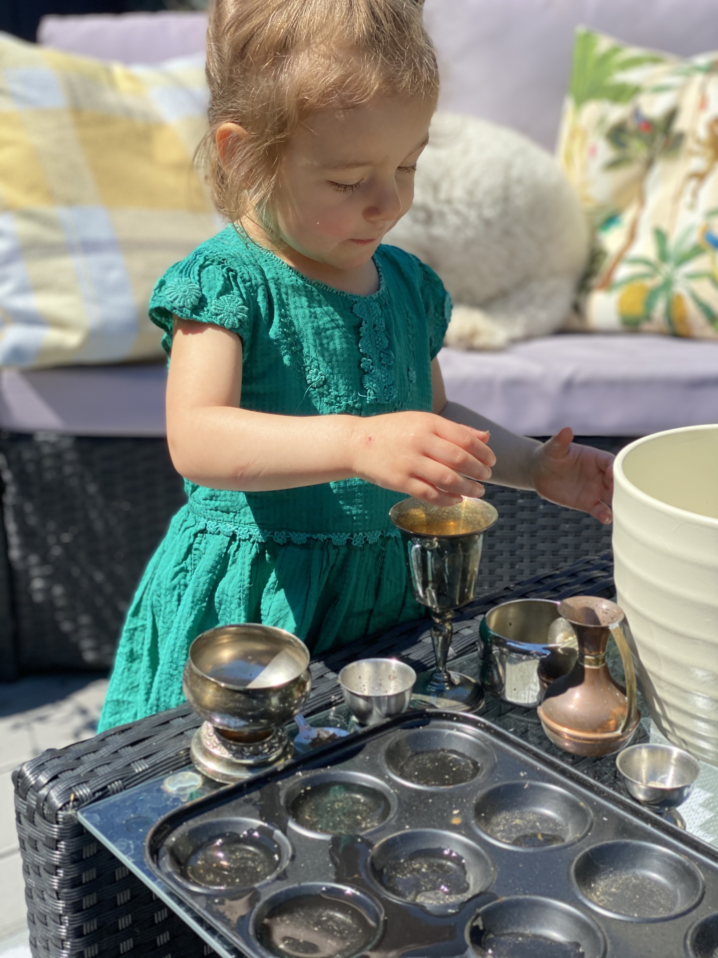 If children have never used authentic resources, start with stainless steel items. To begin with children are getting used to the difference in weight and size to a plastic play tea set. They will learn new skills of manipulation and holding a heavier and larger item. These cheap and sustainable resources can be picked up relatively cheaply at charity, or op shops and car boots.