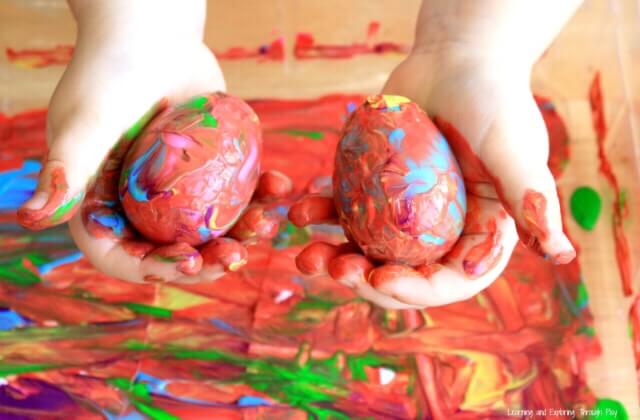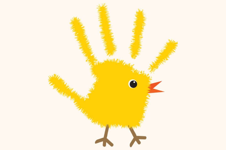 The handprint flowers, or Easter chicks. Painting children’s hands in succession & holding their wrists as we carefully print, taking extra care that the paint doesn’t smudge or smear.
